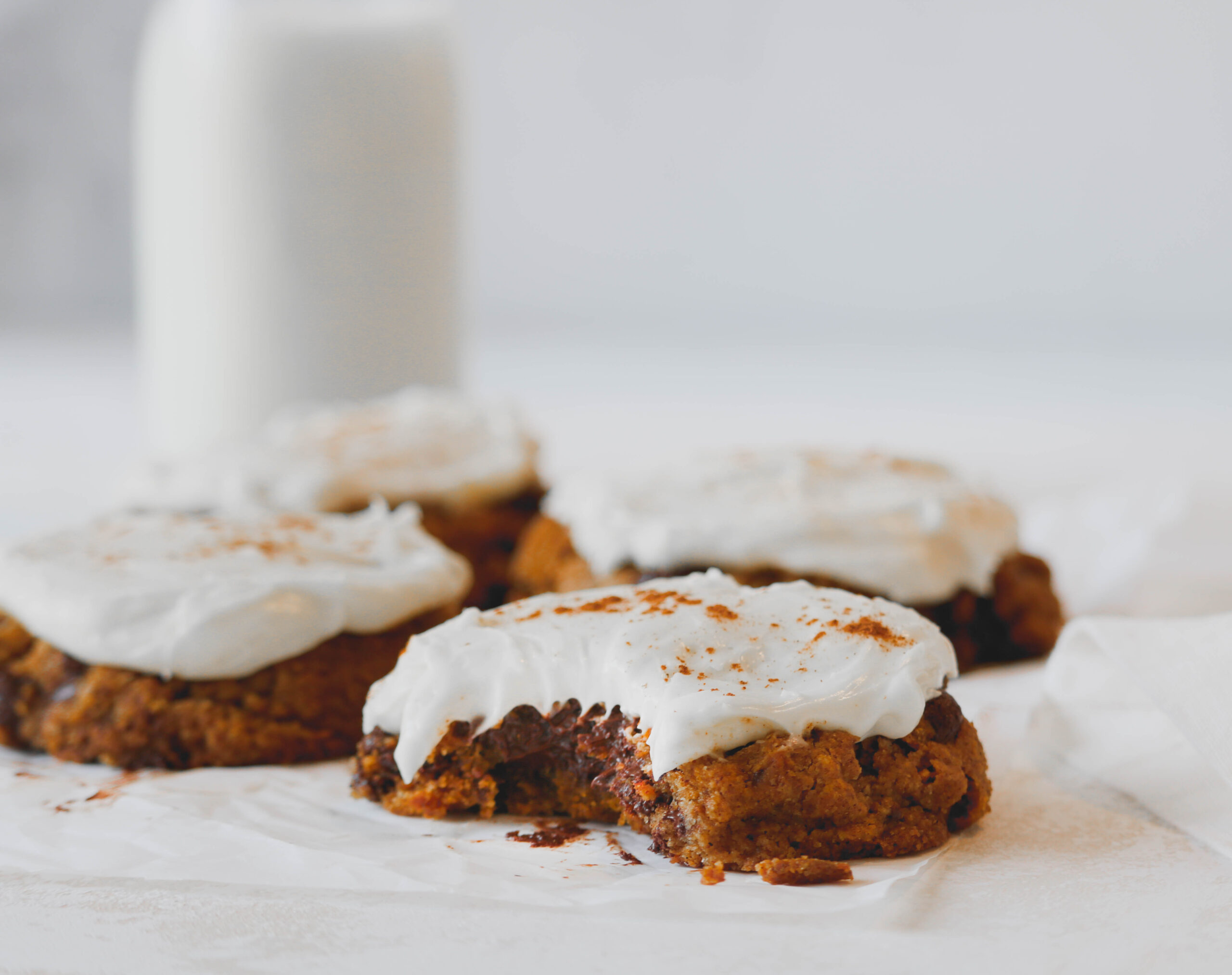 When fall and winter come around and temperatures fall, I always find myself craving these Levain-style pumpkin chocolate chip cookies. Crisp on the outside and gooey in the middle – just like all cookies should be!