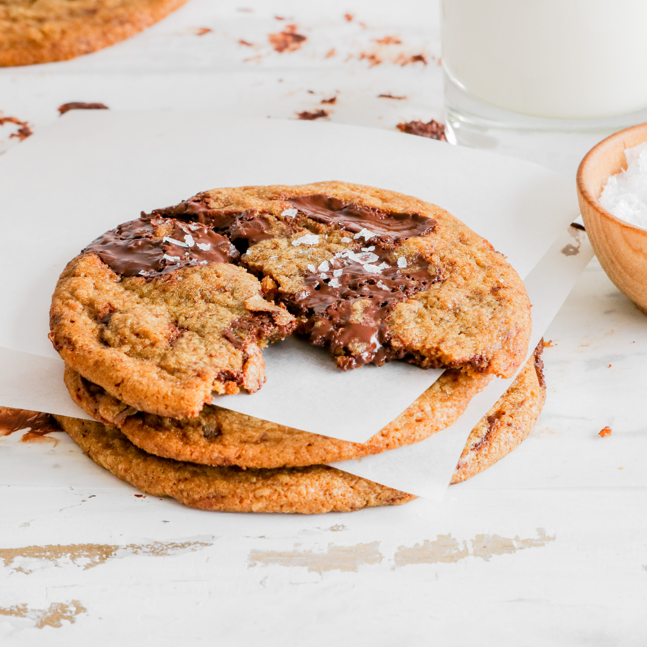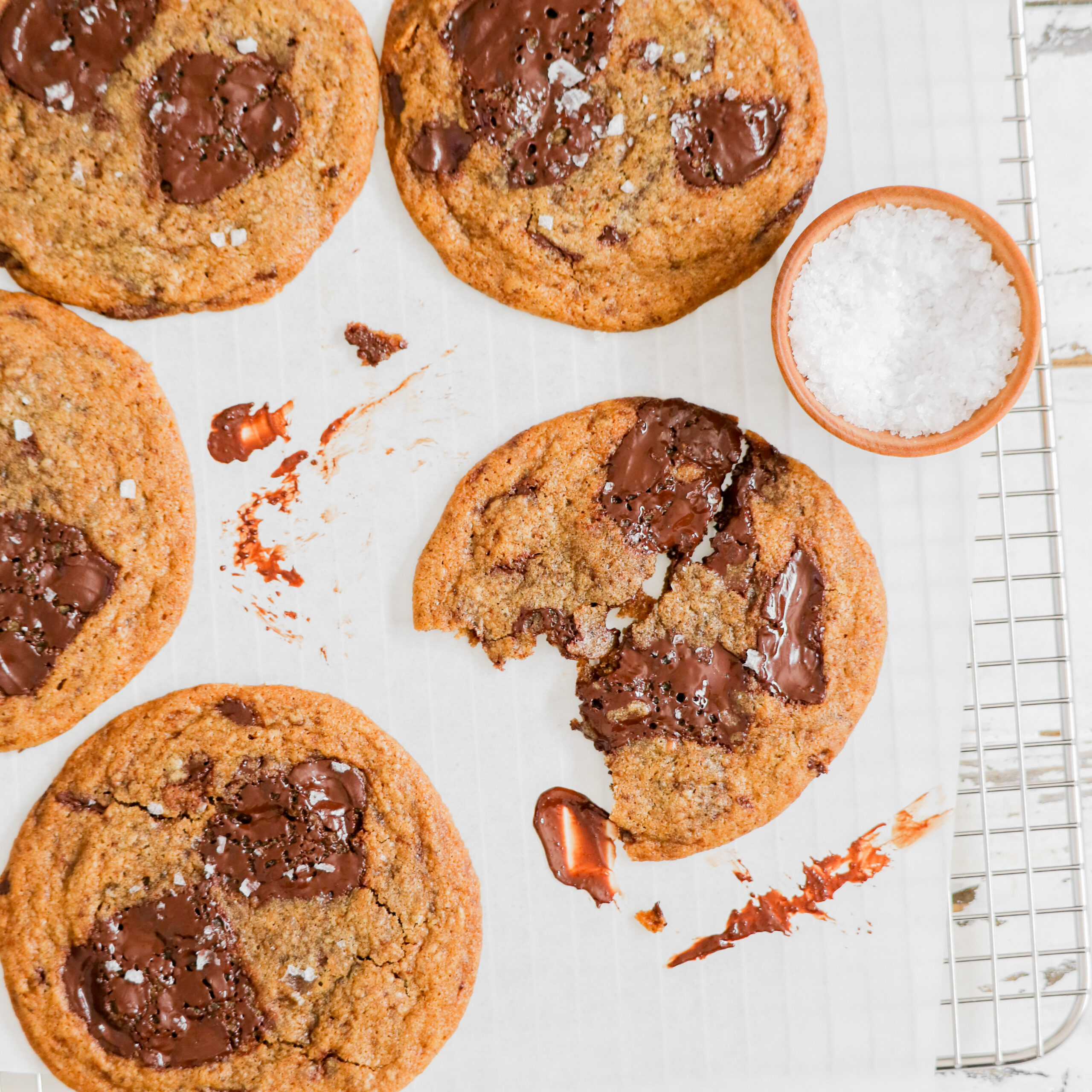 - Remove from the oven, sprinkle cookies with flaky salt, and let cool.